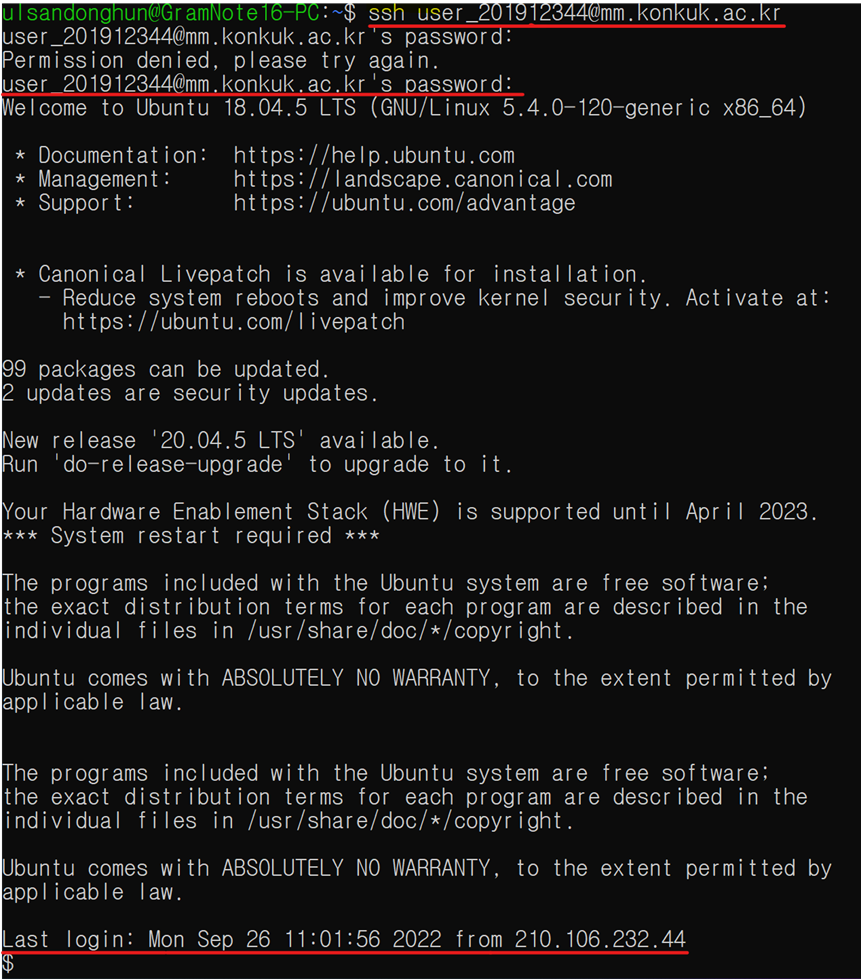 우선적으로, 노트북에는 OS가 window라 WSL2 를 이용한 UBUNTU 20.04 LTS 버전으로 리눅스 shell을 사용하였다.