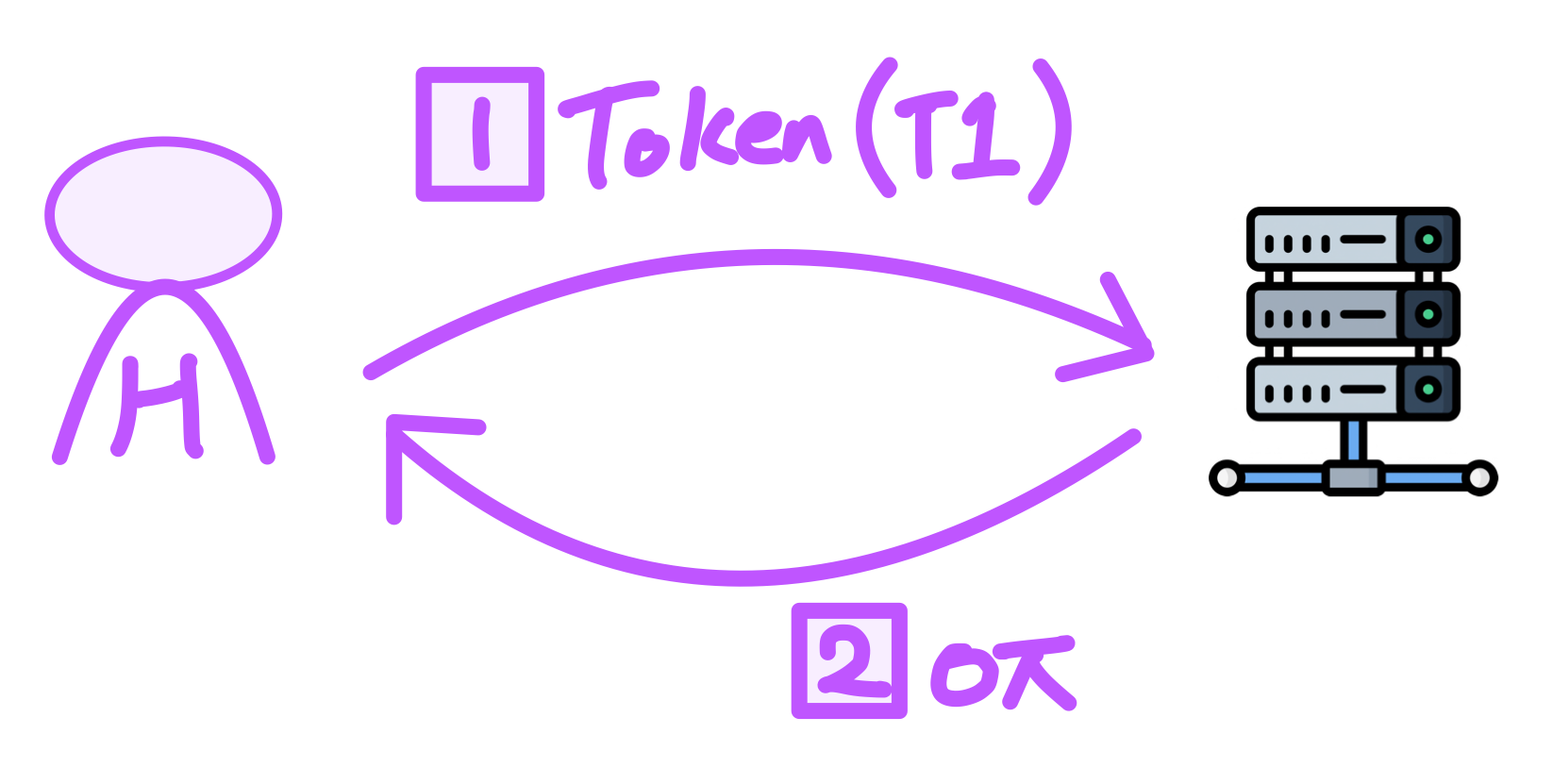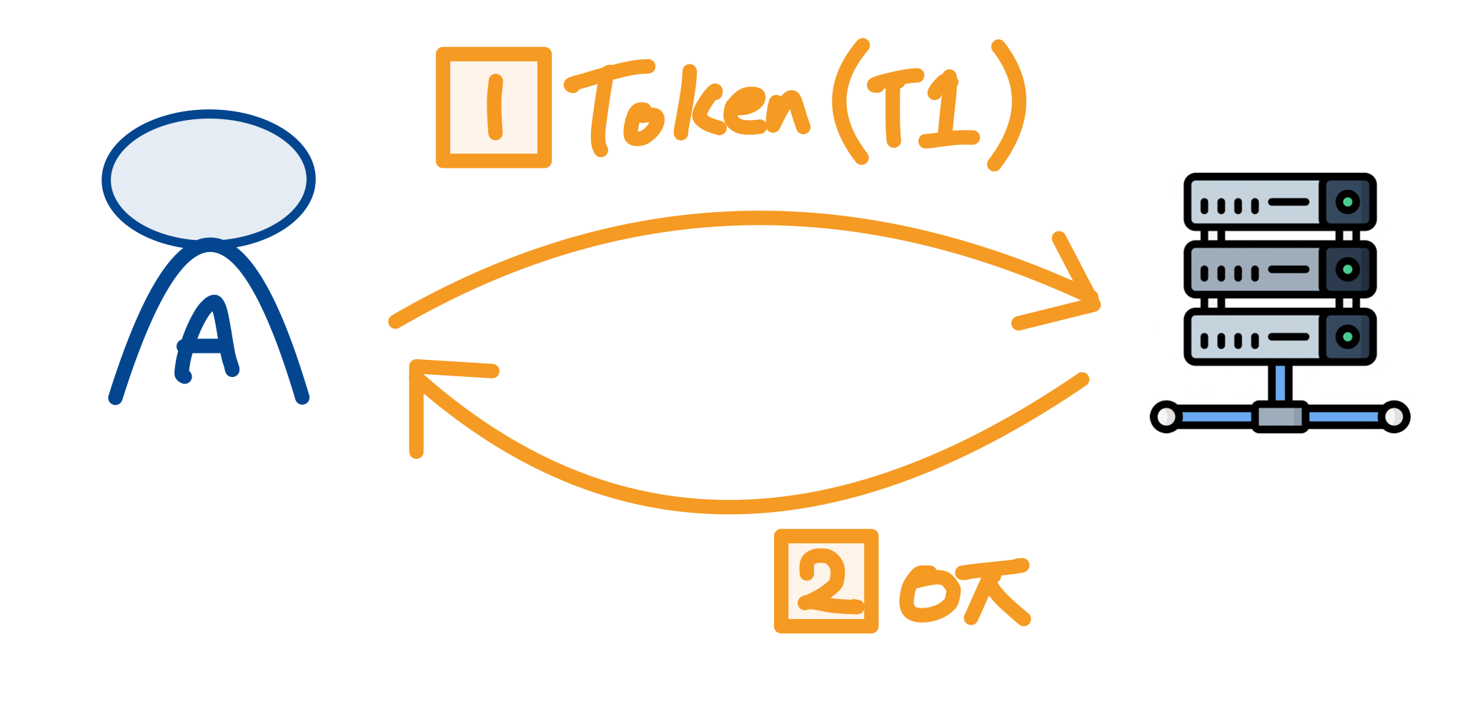 사용자 A는 자신의 토큰(T1) 을 사용해서 서버 인증을 요청한다.