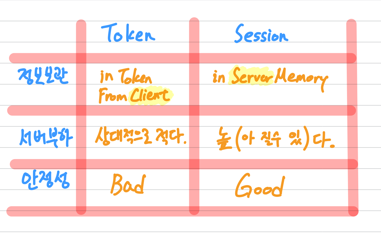 사용자의 인증 정보가 서버 메모리(=세션 저장소)에 저장되는 방식. 여기서 메모리란 Database가 아닌 서버 자체의 메모리를 의미한다.