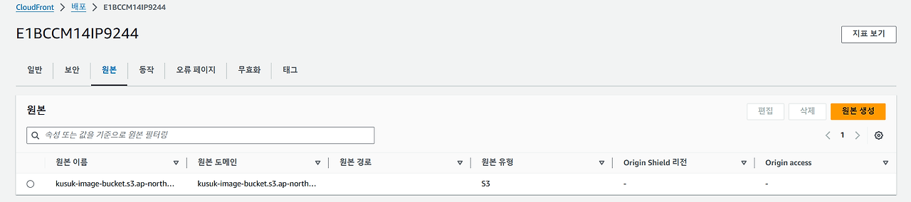 우선 AWS CloudFront 를 생성하고, 현재 쿠석쿠석에서 보유하고 있는 이미지 파일 버컷을 등록해 주었습니다.