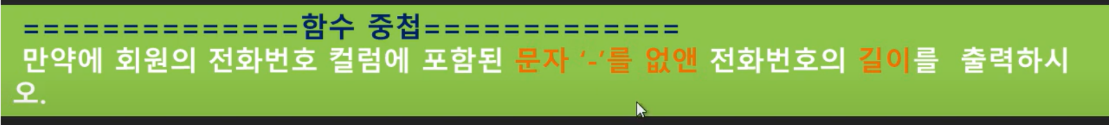 이렇게 되면, 전화번호(칼럼)에 '-' 문자를 없앤 길이를 각 행에 출력한다.