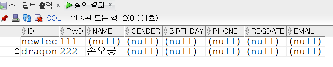 insert into member(id,pwd) values('dragon','222');