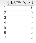 예를들면 위 테이블의 ID 중 M이 몇번째 자리에 존재하는지 알고싶다면