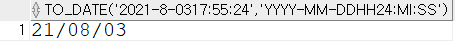 select to_date('2021-8-03 17:55:24','yyyy-mm-dd hh24:mi:ss' )from dual;