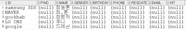이렇게 인적사항만 별도로 저장된 'member' 라는 테이블과 글 내용이 분리되어 있었따.
