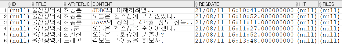 | 최동훈 | 000.131 | 최동훈 | jdbc의 이해... |