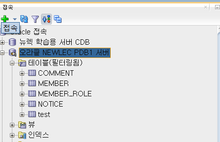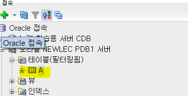 ->그래도 NEWLEC이라는 사용자가 가지고있는 테이블을 쓰고 싶다면 접속할떄, 같은 PDB 서버의 같은 계정 NEWLEC 계정(스키마)로 접속하면된다. 다른 계정으로 테이블스페이스를 같게 설정해도 공유가 안된다. 왜냐하면 사용자별로 테이블 스페이스를 사용하는 영역이 다르기 떄문이다.