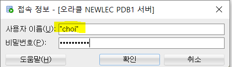 -> 사용자 계정 이름은 대소문자를 구별한다. 그래서 소문자 choi는 위 사진에서 보듯이, choi 가 아닌 "choi"로 입력해야 정상적으로 접속이 된다.