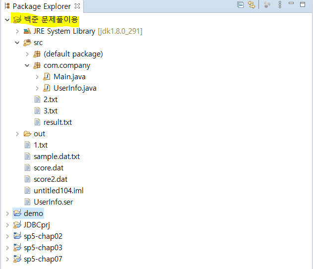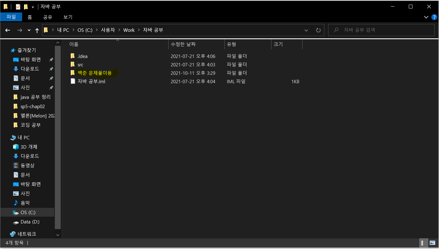 위 기능을 이용해서 난 인텔리제이에서 작업하던 "백준 자바 문제풀이용" 이라는 자바 프로젝트를 이클립스로 불러왔다.